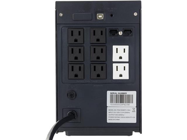 STEPPED SINE WAVE UPS: 800VA/480W with 16 minutes of battery back-up time at half loadOUTLETS: 6 battery backup outlets / 2 surge outlets / USB portLINE-INTERACTIVE: AVR technology (automatic voltage Regulation) ensures consistent and clean powerWARRANTY: Completely hassle-free, no questions asked, two-year warrantyRJ45 PROTECTION: Site wiring fault indicator and EMI/RFI filters