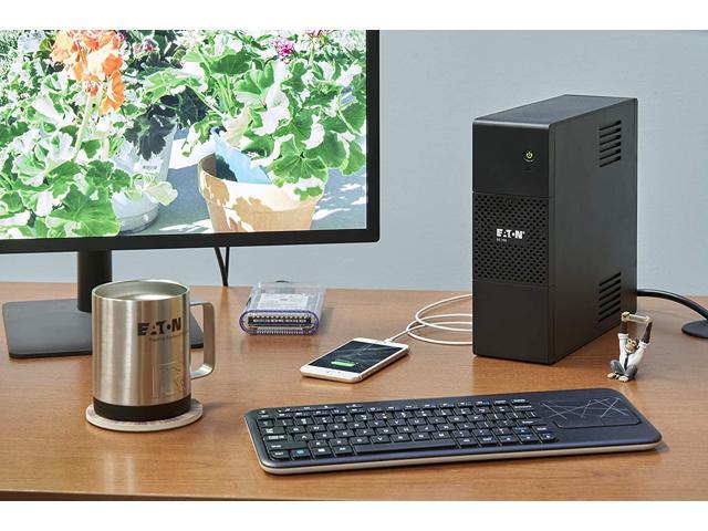 The 5S displays critical UPS information on battery time and outage tracking through an available, user-friendly LCD interface. This desktop UPS also provides surge protection for your network data line and coax cable connection. By combining Eaton’s Intelligent Power Protector complimentary software with the 5S, you can avoid data loss by gracefully shutting down your connected computer during an extended power outage. The versatile 5S can be used as a tower or as a desktop monitor stand, and it comes with a standard three-year warranty on the UPS and batteries along with a $150,000 load protection guarantee for all of your connected equipment. Applications include: Residential, retail, banks, offices. Connected equipment may include: Workstations, PCs, routers and networking devices, entertainment systems and point-of-sale (POS) equipment. The UPS arrives with the internal batteries disconnected for safety during shipping. Please be sure to connect the internal batteries prior to startup for normal operation. For troubleshooting, technical support, and warranty issues, please contact Eaton service directly at 1-(800)-356-5737, option 1 for technical support, or request support at //eaton.com/us/en-us/support/backup-power-ups-surge-it-power-distribution/post-sale-customer-support/post-sale-product-support.html