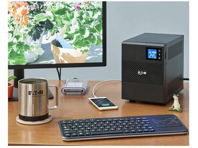 The 5S displays critical UPS information on battery time and outage tracking through an available, user-friendly LCD interface. This desktop UPS also provides surge protection for your network data line and coax cable connection. By combining Eaton’s Intelligent Power Protector complimentary software with the 5S, you can avoid data loss by gracefully shutting down your connected computer during an extended power outage. The versatile 5S can be used as a tower or as a desktop monitor stand, and it comes with a standard three-year warranty on the UPS and batteries along with a $150,000 load protection guarantee for all of your connected equipment. Applications include: Residential, retail, banks, offices. Connected equipment may include: Workstations, PCs, routers and networking devices, entertainment systems and point-of-sale (POS) equipment. The UPS arrives with the internal batteries disconnected for safety during shipping. Please be sure to connect the internal batteries prior to startup for normal operation. For troubleshooting, technical support, and warranty issues, please contact Eaton service directly at 1-(800)-356-5737, option 1 for technical support, or request support at //eaton.com/us/en-us/support/backup-power-ups-surge-it-power-distribution/post-sale-customer-support/post-sale-product-support.html