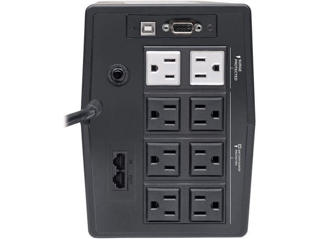 500VA/360W/120V Battery backup for PCs, home theater or digital signage this 120V UPS with AVR protection provides reliable battery backup and AC power protection against blackouts, brownouts, over voltages, surges and line noise that can damage valuable electronics or destroy data. The six-outlet 120V Battery backup is ideal protection for your home office, media center or Commerce components, including computers, routers, printers, HD TVs, Blu-ray players, game consoles, ATMs, security systems and digital signage equipment. Allows time to back up critical files during a blackout backup support allows you to out through short power failures, and gives you enough time to safely save files and shut down your system in case of a prolonged blackout. Backup time varies according to load, but the line-interactive UPS system should keep an energy-efficient desktop computer with small LCD monitor powered as long as 45 minutes. During normal operation, incoming utility power keeps the replaceable internal battery fully charged, so backup power will always be available. Connects your equipment to 6 NEMA 5-15R outlets four 5-15R outlets provide both battery backup and surge protection for your computer, monitor and other crucial components. The other two 5-15R outlets are surge-protected only for printers, scanners and other non-essential equipment. A high > 95% line mode efficiency rating reduces BTU emissions, energy consumption and, ultimately, your energy costs. Automatic voltage regulation (AVR) corrects low- and high-voltage conditions AVR protects your equipment from incremental hardware damage, data loss and performance problems caused by brownouts and overvoltage. The OMNISMART500TU can correct brownouts as low as 89V and overvoltage as high as 145V back to nominal 120V power without drawing on the battery backup needed to support your equipment during a blackout. 316 joules fight back against unexpected power surges a 316-joule surge suppression rating protects connected components from the harmful effects of power surges. Combats electromagnetic interference that can harm equipment various electromagnetic and radio sources found in virtually every home and business can cause disruptive interference on the AC line. Known as EMI (electromagnetic interference) and RFI (radio frequency interference), This line noise is a common cause of performance problems and can lead to incremental hardware damage, data corruption and audio/video transmission problems. The OMNISMART500TU incorporates technology that filters out disruptive line noise so that it won’t affect your equipment. Easy-to-read LCD touchscreen reports real-time UPS and power status The LCD touchscreen offers five screens of UPS and site power information when the OMNISMART500TU is operating in either on-line or battery power mode. It displays vital voltage, load and battery status data, as well as critical fault status. An audible alarm will sound in case of low battery, excessive load and fault condition. Hid-compliant USB port allows for automatic saves and shutdowns this port connects the OMNISMART500TU to a computer running Tripp Liter’s free downloadable PowerAlert software to enable safe unattended file saves and system shutdown in case of a prolonged power failure. Usb cable is included. The UPS Works with Windows, Mac and Linux operating systems. Includes Power protection for your phone and network lines dual RJ45 jacks protect equipment against surges over a single telephone or network line. Note: not compatible with PoE (power over Ethernet) applications. Tower form factor for easy placement in your workspace or media center The long-lasting ABS housing fits easily on a desktop, shelf or anywhere else convenient to your workstation or home theater. The five-foot power cord with NEMA 5-15P plug connects to a properly grounded AC wall outlet.