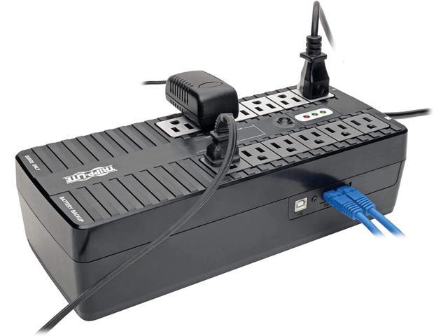 Product Description The ECO550UPS standby green UPS offers complete protection from blackouts, brownouts and transient surges. Supports green energy savings via built-in Eco outlets that automatically power off unused computer accessories like printers or multi-media speakers when the computer is not in use. Full load efficiency rating of 99% also offers energy-savings and cooler operation by limiting UPS power consumption to only 3 watts! The design meets strict RoHS environmental standards. Provides uninterrupted transition to battery-derived AC output during brownouts and power failures with enough runtime to save and shutdown connected equipment without data loss. Offers complete protection in an ultra-compact desktop or wall-mountable housing. Includes 4 battery supported outlets for computer, monitor and two vital system peripheral, plus 4 additional surge suppression-only outlets for accessories not requiring battery support. Three of the surge-only outlets are designated Eco outlets that can be configured to automatically power-off when the computer enters standby mode or is shutdown. USB port enables UPS configuration options and unattended system shutdown without data loss in the case of extended power failure. PowerAlert software is available via Tripp Lite’s website at no cost. USB cable included. Built-in single line RJ11 phone suppression protects modem, fax machine, cordless phone or other accessories with a dialup/DSL phone connection. Built-in audible alarm and front panel LEDs offer continuous status information regarding line and battery power operation. 550VA / 300 watt power handling ability supports entry-level PC systems for up to 17 minutes during power fail conditions.