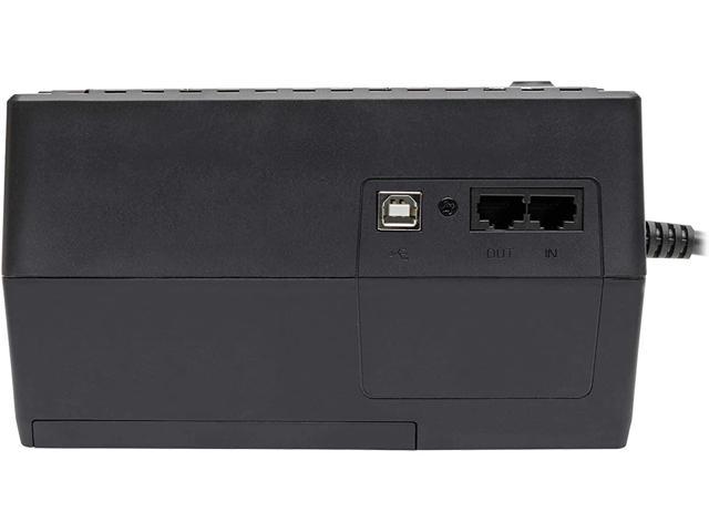 Tripp Lite’s INTERNET550U standby UPS offers complete protection for PCs, workstations and other sensitive electronics in an attractive ultra-compact, mountable housing. Prevents data loss and system downtime by providing battery supported AC output during brownouts and blackout conditions. 8 output receptacles, two of which are widely-spaced to accommodate large transformer plugs without blocking outlets. 4 outlets with full battery support and surge suppression protect computers, monitors and other vital system components from loss of power. 4 additional outlets with surge suppression-only are ideal for printers and other accessories not requiring battery support. Single line telephone suppression jacks protect modem, fax machine, cordless phone or other peripherals with a standard dialup or DSL phone line connection. USB with PowerAlert monitoring software (available via web download) and cabling enables safe unattended system shutdown in the case of extended power failure. HID-compliant USB enables integration with built-in power management and auto-shutdown features of Windows and Mac OS X. Audible alarm and front panel LEDs offer status information regarding line and battery power operation. 550VA/300 watt power handling ability supports an entry level PC with small monitor consuming 100 watts for up to 10 minutes during power failures. $100,000 Ultimate Lifetime Insurance (U.S., Canada, and Puerto Rico only).