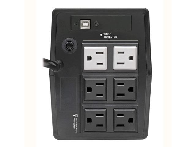 650VA/480W/120V Battery backup for PCs, home theater or digital signage this 120V UPS with AVR protection provides reliable battery backup and AC power protection against blackouts, brownouts, over voltages, surges and line noise that can damage valuable electronics or destroy data. The six-outlet 120V Battery backup is ideal protection for your home office, media center or Commerce components, including computers, routers, printers, HDTVs, Blu-ray players, game consoles, ATMs, security systems and digital signage equipment. Allows time to back up critical files during a blackout backup support allows you to out through short power failures, and gives you enough time to safely save files and shut down your system in case of a prolonged blackout. Backup time varies according to load, but the line-interactive UPS system should keep an energy-efficient desktop computer with small LCD monitor powered as long as 45 minutes. During normal operation, incoming utility power keeps the replaceable internal battery fully charged, so backup power will always be available. Connects your equipment to 6 NEMA 5-15R outlets four 5-15R outlets provide both battery backup and surge protection for your computer, monitor and other crucial components. The other two 5-15R outlets are surge-protected only for printers, scanners and other non-essential equipment. A high 95% line mode efficiency rating reduces BTU emissions, energy consumption and, ultimately, your energy costs. Automatic voltage regulation (AVR) corrects low- and high-voltage conditions AVR protects your equipment from incremental hardware damage, data loss and performance problems caused by brownouts and overvoltage. The AVRT650U can correct brownouts as low as 89V and overvoltage as high as 145V back to nominal 120V power without drawing on the battery backup needed to support your equipment during a blackout. 316 joules fight back against unexpected power surges a 316-joule surge suppression rating protects connected components from the harmful effects of power surges. Combats electromagnetic interference that can harm equipment various electromagnetic and radio sources found in virtually every home and business can cause disruptive interference on the AC line. Known as EMI (electromagnetic interference) and RFI (radio frequency interference), This line noise is a common cause of performance problems and can lead to incremental hardware damage, data corruption and audio/video transmission problems. The AVRT650U incorporates technology that filters out disruptive line noise so that it won’t affect your equipment. Easy-to-see LEDs report real time UPS and power status front-panel LEDs provide UPS and site power information when the AVRT650U is operating in either on-line or battery power mode. They indicate operating mode, low battery, overload and fault condition. An audible alarm will sound in case of low battery, excessive load and fault condition. Hid-compliant USB port allows for automatic saves and shutdowns this port connects the AVRT650U to a computer running Tripp Liter’s free downloadable PowerAlert software to enable safe unattended file saves and system shutdown in case of a prolonged power failure. Usb cable is included. The UPS Works with Windows, Mac and Linux operating systems. Tower form factor for easy placement in your workspace or media center The long-lasting ABS housing fits easily on a desktop, shelf or anywhere else convenient to your workstation or home theater. The five-foot power cord with NEMA 5-15P plug connects to a properly grounded AC wall outlet.