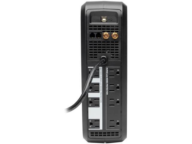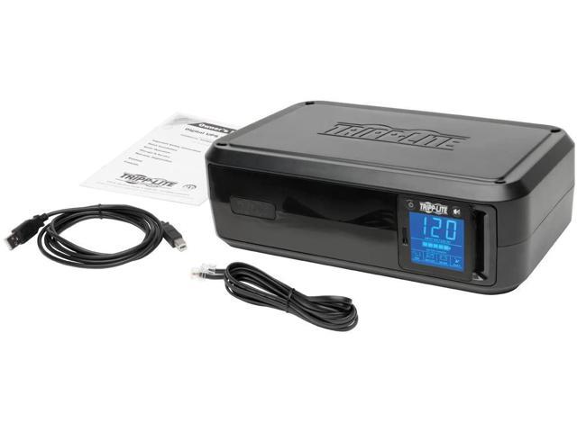 The TAA-compliant SMART1000LCDTAA SmartPro LCD 120V, 1000VA/500W Line-Interactive Uninterruptible Power Supply provides battery backup and AC power protection against blackouts, brownouts, power surges and line noise that can damage electronics or destroy data. Ideal for backing up your desktop computer or audio/visual components, this line-interactive UPS switches to battery backup mode in milliseconds to keep your connected equipment running long enough to save files and shut down safely with no data loss. While all eight NEMA 5-15R outlets protect against surges, four outlets also provide up to 3 hours of UPS battery support for a DVR component, 60 minutes of support for a basic desktop PC and LCD monitor, and 10 minutes of support at half load (250W). Automatic voltage regulation (AVR) corrects undervoltages as low as 89V without using any battery power. EMI/RFI noise filtering improves your equipments performance and prevents damage. A 1038-joule surge suppression rating protects your equipment from harmful power surges. Space-saving NEMA 5-15P plug with 6-foot cord connects to any NEMA 5-15R socket and allows furniture to be placed flush against the wall. Large rotatable LCD screen with dimmer shows real-time statuses at a glance. With Tripp Lites free PowerAlert software (available via free web download), the SMART1000LCDTAA enables safe unattended system shutdown and file saves in case of a prolonged power failure.