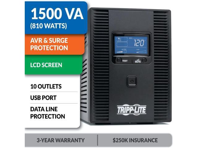 Tripp Lite SMART1500LCDT 1500VA 900W UPS Battery Back Up, AVR, LCD Display, Line-Interactive, 10 Outlets, 120V, USB, Tel & Coax Protection, 3 Year Warranty & Dollar 250,000 Insurance Black