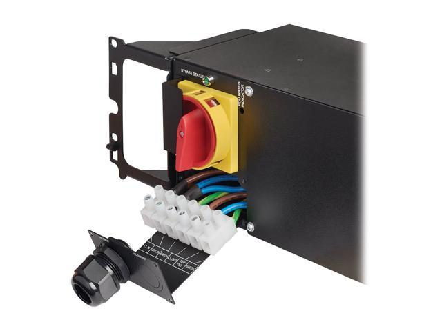| Package Contents | On-line double-conversion UPS Pre-installed WEBCARDLXMINI network management card Detachable bypass PDU Step-down transformer (2) Hardwire strain reliefs USB cable RS-232 cable L6-30P power cable Rack-mounting hardware Owner’s manual |