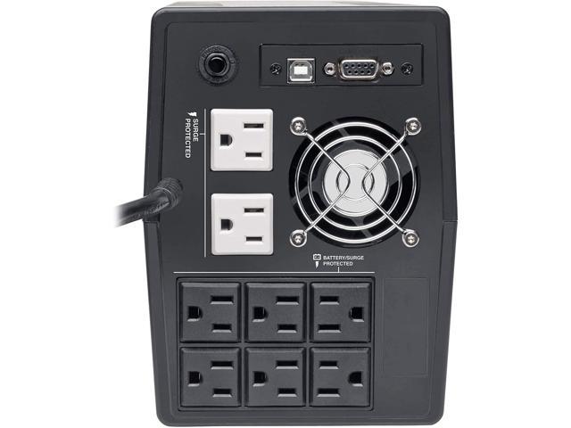 1440VA/900W/120V Battery backup for PC networks, security systems or digital signage The omnivs line-interactive OMNIVS1500LCD UPS system with AVR protection provides reliable battery backup and AC power protection against blackouts, brownouts, overvoltages, surges and line noise that can damage valuable electronics or destroy data. The eight-outlet 120V Battery backup is ideal protection for your home office, media center or Commerce components, including computers, routers, printers, HD TVs, Blu-ray players, game consoles, ATMs, security systems and digital signage equipment. Allows time to back up critical files during a blackout backup support allows you to out through short power failures and gives you enough time to safely save files and shut down your system in case of a prolonged blackout. Backup time varies according to load, but the line-interactive UPS system should keep an energy-efficient desktop computer with small LCD monitor powered as long as two hours. During normal operation, incoming utility power keeps the replaceable internal battery fully charged, so backup power will always be available. 8 NEMA 5-15R outlets protect your connected components six 5-15R outlets provide battery backup, surge protection and voltage regulation for your computer, monitor and other crucial components. The other two 5-15R outlets provide surge suppression only for printers, speakers and other desktop equipment regarded as non-essential during a blackout. Automatic voltage regulation (AVR) corrects low- and high-voltage conditions AVR protects your equipment from incremental hardware damage, data loss and performance problems caused by brownouts and overvoltage. The OMNIVS1500LCD can correct brownouts as low as 89V and overvoltage as high as 145V back to nominal 120V power continuously, all while keeping the battery fully charged and ready to take over in case of power failure. Combats line noise that can harm equipment EMI (electromagnetic interference) and RFI (radio frequency interference) are common causes of performance problems and can lead to incremental hardware damage, data corruption and audio/video transmission problems. The OMNIVS1500LCD Filters out This disruptive line noise on the AC line, so that it won’t affect your equipment. Designed for high efficiency to help you save money and protect the environment A > 95% efficiency rating reduces BTU emissions, energy consumption and, ultimately, your energy costs. Home-friendly silent alarm and LCD touchscreen keep you informed 24/7 The UPS remains silent in both line and battery backup modes. The alarm sounds only to report low battery, battery replace, overload and fault condition. The LCD touchscreen offers five screens of UPS and site power information when the UPS is operating in either on-line or battery power mode. It displays vital voltage, load and battery data, as well as critical fault status. Advanced communications ports allow for automatic saves and shutdowns RS-232 and hid-compliant USB ports connect to a computer running Tripp Liter’s free downloadable PowerAlert software to enable safe unattended file saves and system shutdown in case of a prolonged power failure. Cables are included. Compact housing compatible with easy desktop installation The space-saving ABS tower fits on a desktop, shelf or any other flat surface convenient to your workstation or home theater. The five-foot power cord with NEMA 5-15P plug connects to any compatible AC outlet. A built-in fan regulates the internal temperature to help prevent overheating.