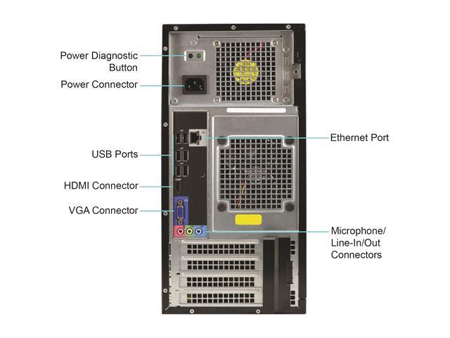 The OptiPlex 390 desktop is a good fit for businesses that have adequate desktop space and desire a high level of expandability. It includes four expansion slots and two media drive bays*.