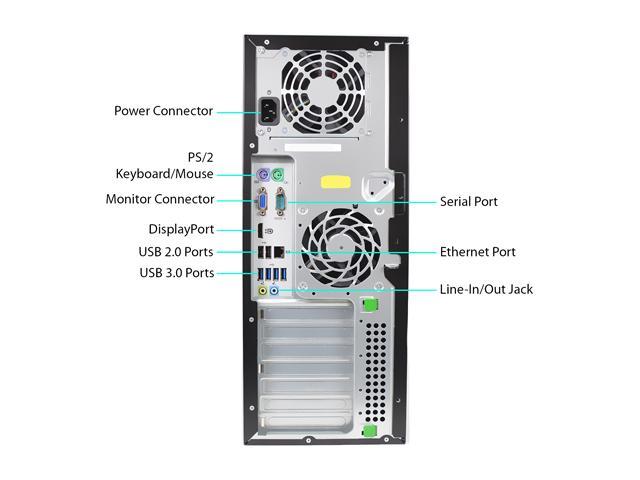 With business needs in mind, the HP 8300 Elite Series Business Desktop PC (part # NE2-0321) has placed line in and line out ports and USB ports up front for convenience, and offers VGA and DisplayPort outputs for dual-monitor set-ups, thus helping you work more productively.